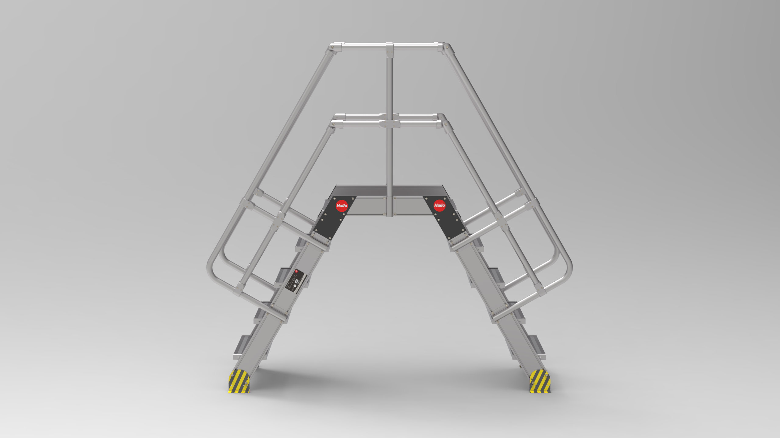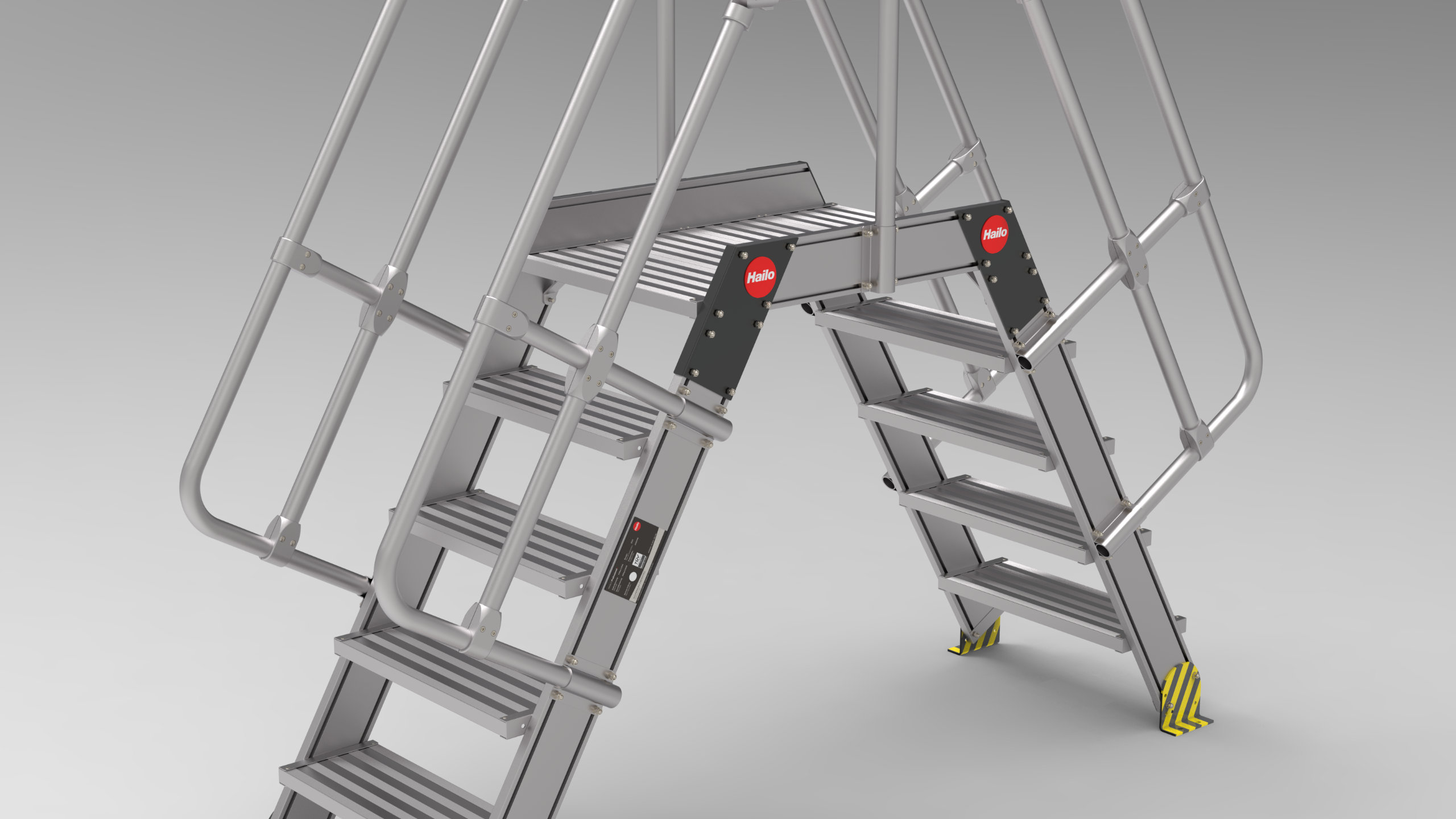 Hailo Überstiege garantieren das sichere Überqueren von Hindernissen. Für maschinelle Anlagen, Lagerbereiche, Verpackungs- oder Produktionsstraßen bietet Hailo diese ortsfesten Überstiege gemäß EN ISO 14122 – modular oder maßgefertigt.